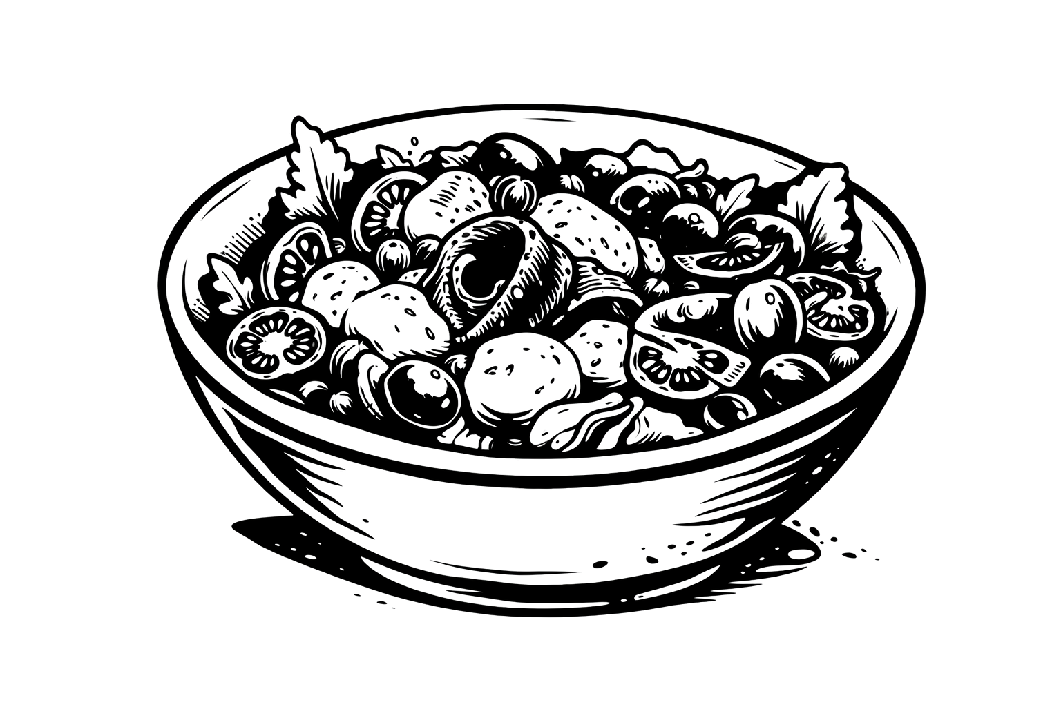 Hard-boiled egg, tuna, cooked ham, corn, grilled zucchini*LEGGERA €9